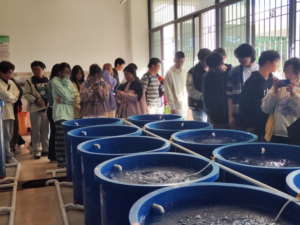 活动开始,2024级海洋资源开发技术专业班级在陈亮宇的引导下,在水产品的加工室向海洋资源开发技术专业的同学介绍了水产品的加工过程和加工方法。在循环水养殖实验室,李发聪为大家介绍了养殖实验室原理以及养殖实验室的具体作用。接着,余宏鑫在水产品精深加工室、海洋动物资源利用与保护研究室向同学们介绍了一些海洋生物的资源利用方式和保护以及水产品的可开发性。最后吴艺华向大家介绍了无机实验室的仪器用处、显微镜的使用方法和一些实验过程中使用仪器的注意事项。