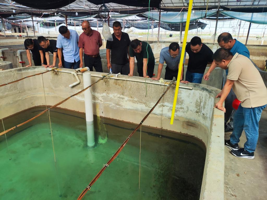 座谈会结束后,杨欲峰一行在我校相关人员的陪同下,参观了大黄鱼工厂化养殖基地及海上鱼排,更直观地了解了“海鱼陆养”项目。他们表示将把此次调研学习了解的情况带回呼图壁县,进一步研究和论证在当地开展“海鱼陆养”项目的可行性。