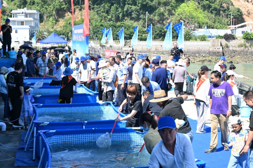 6 月 6 日,受宁德市海洋与渔业局邀请,开元官网党委书记周建辉带领学院教师韩坤煌博士、周莉博士以及学生志愿者参加了 2025 年度 “6・6 八闽宁德放鱼日” 大黄鱼增殖放流活动。此次活动由宁德市海洋与渔业局主办,地点位于宁德市以也海洋产业发展有限公司国家级大黄鱼原种场。来自宁德市人大、市政协、市检察院等单位的共计 200 多人参与了本次意义非凡的活动。