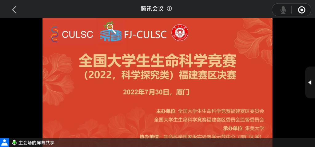 2022年7月30日,由全国大学生生命科学竞赛福建赛区委员会主办、集美大学承办、厦门大学生命科学国家级实验教学示范中心协办的全国大学生生命科学竞赛(2022,科学探究类)福建赛区决赛在厦门集美大学拉开帷幕,开元官网共有18支队伍参加此次竞赛,其中6支队伍成功进入省赛。经过紧张激烈的专家审评和线上答辩,开元官网学子在本次全国大学生生命科学竞赛中喜获国家三等奖一项,省赛二等奖一项,省赛三等奖五项。