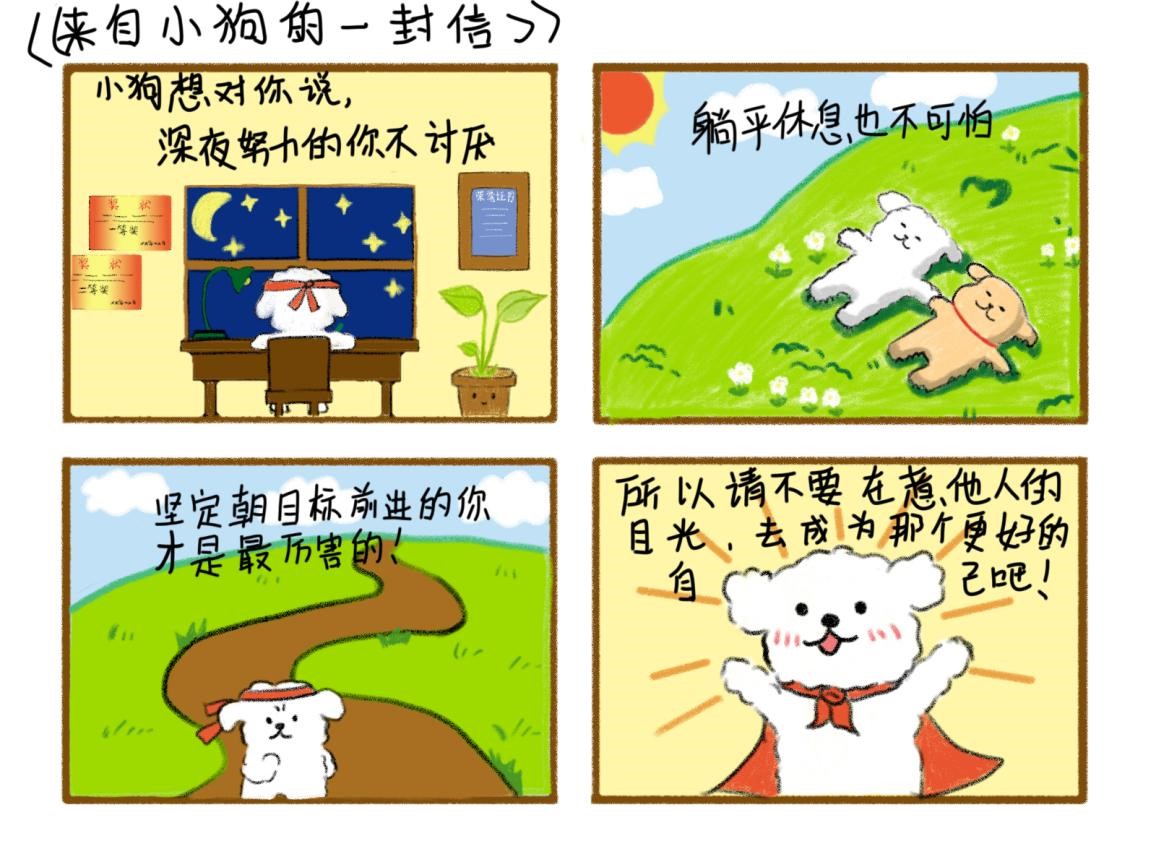 此次活动鼓励大家通过微笑绘画传递幸福和正能量。参赛选手围绕“微笑”这一主题,创作绘画作品,富有新意,积极向上,体现生活中所遇的开心事件。各参赛选手充分发挥创造力与想象力,其中,23级食品(闽台)1班陈可欣同学以优秀作品《来自小狗的一封信》荣获一等奖,她在作品中提到:“请不要在意他人的目光,坚定的走自己的路,按照自己的步伐来,不要着急,去勇敢成为那个更好的自己吧!”。23食品(闽台)1班吴佳佳创作的《价值》与23食品(闽台)1班林怡姗创作的《微笑的意义》获二等奖。23食品(闽台)1班庄妍妍《波及国王的微笑》、22食品1班蓝沁怡《海绵宝宝和它的朋友》和23食品(闽台)1班郑诗娴《温馨的小男孩》获三等奖。