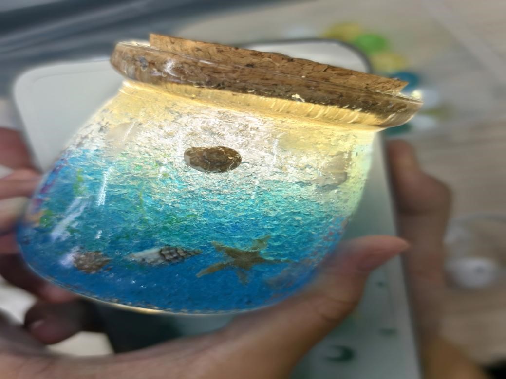 这次海洋瓶 DIY 创造活动,不仅是一次手工创作的聚会,更是一个让人们深度感受海洋独特魅力、充分激发无限想象力的优质平台。活动将浩瀚海洋的美丽与神秘巧妙浓缩于小小的瓶子之中,让每一个参与者都能将这份梦幻带回家。同时,活动也在大家心中种下了保护海洋的种子,提醒人们珍惜海洋资源,守护那片蓝色家园。相信此次活动会成为参与者们记忆中一抹亮丽的蓝色,并吸引更多人投身到此类富有意义的创意活动中来,丰富校园文化生活。