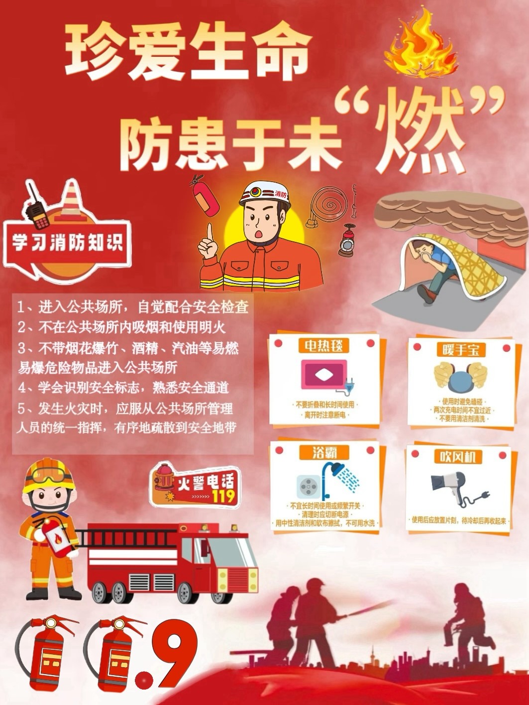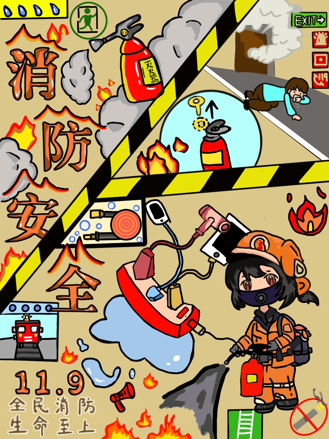 为增强全民消防安全意识,提升社会火灾防控能力,丰富校园生活,开元官网于2024年11月18日至11月23日举办了以“全民消防,生命至上” 为主题的海报设计比赛。