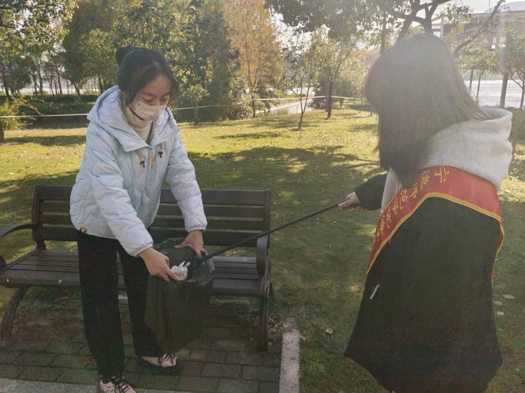 为确保活动有序进行,活动负责人事先进行了周密的筹备工作,充分准备劳动工具,并在现场有序分发。活动伊始,团委志愿服务部副部长庄妍妍为大家详细介绍了活动流程,强调了安全事项和注意事项,确保每位参与者都能在确保自身安全的情况下明确自身任务和责任。与此同时,她还特别鼓励大家要发扬团队协作精神,相互帮助,共同进步。随后,同学们两两一组,迅速的投入到了本次志愿服务行动中。一个俯身之举,一次捡拾之行,捡起的不只是垃圾,还扛起了我们作为青年的责任和担当。同学们贯彻不怕苦、不怕脏、不怕累的志愿服务精神,将环境保护落到实处,为守护碧水蓝天添砖加瓦。最终,在大家的共同努力下,北岸公园变得更加洁净美丽。