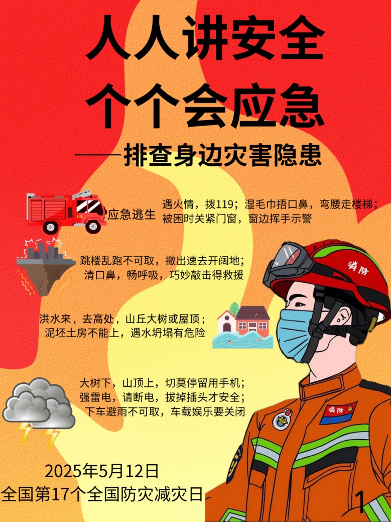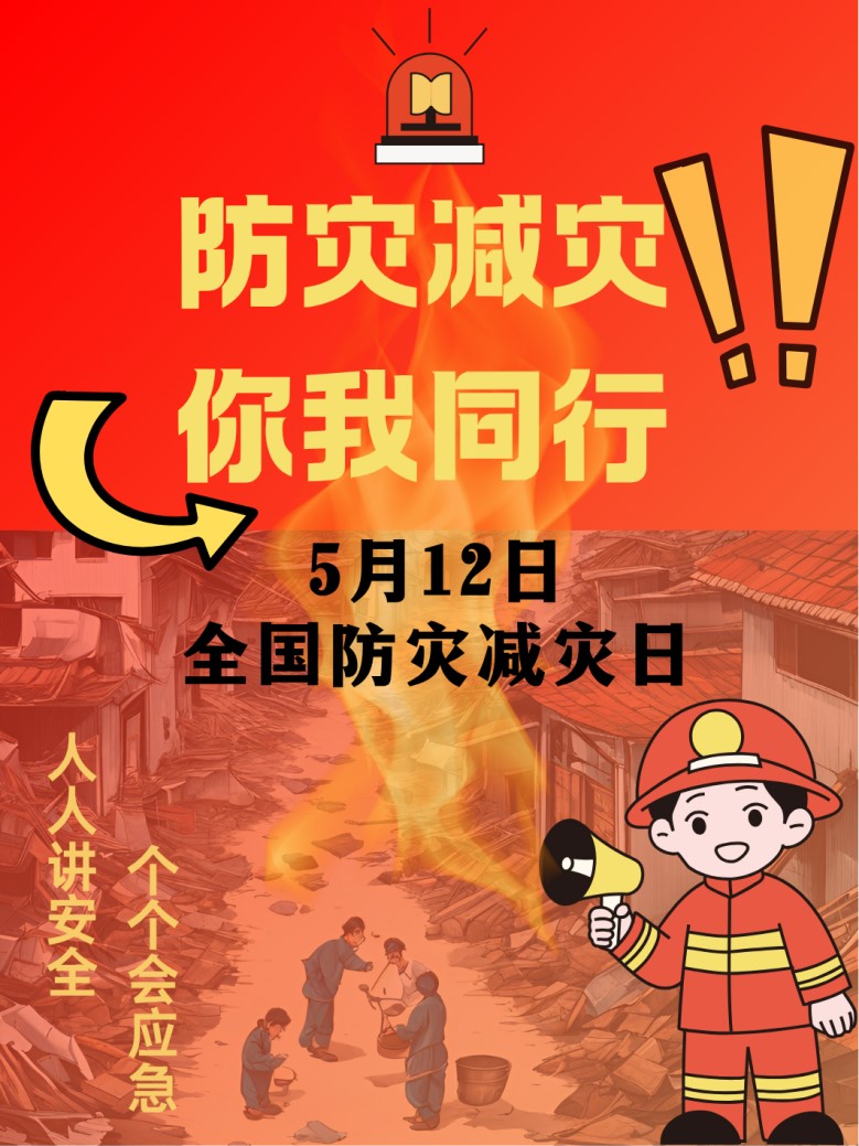 2025年5月13日至5月15日开元集团网站开展“人人讲安全,个个会应急——排查身边灾害隐患”全国防灾减灾日海报设计比赛(二等奖作品:食品23(1)吕燕如《防灾减灾,你我同行》)