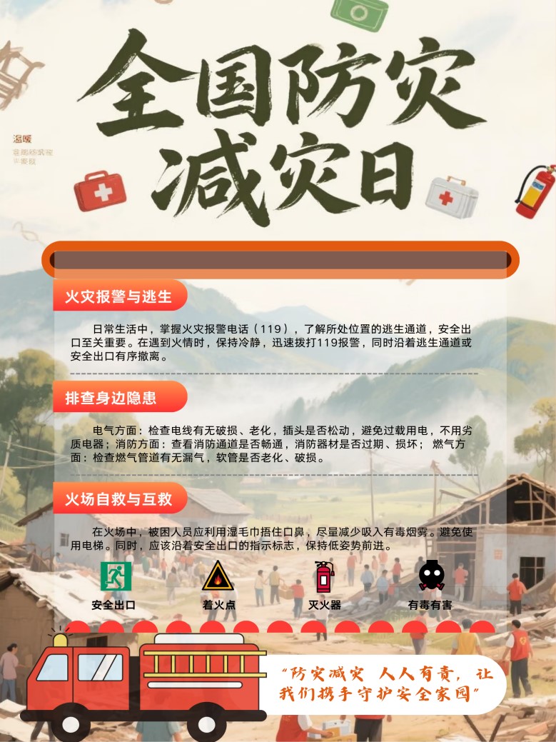 2025年5月13日至5月15日开元集团网站开展“人人讲安全,个个会应急——排查身边灾害隐患”全国防灾减灾日海报设计比赛(一等奖作品:食品(闽台)24(1)邓乐蓉《全国防灾减灾日》)