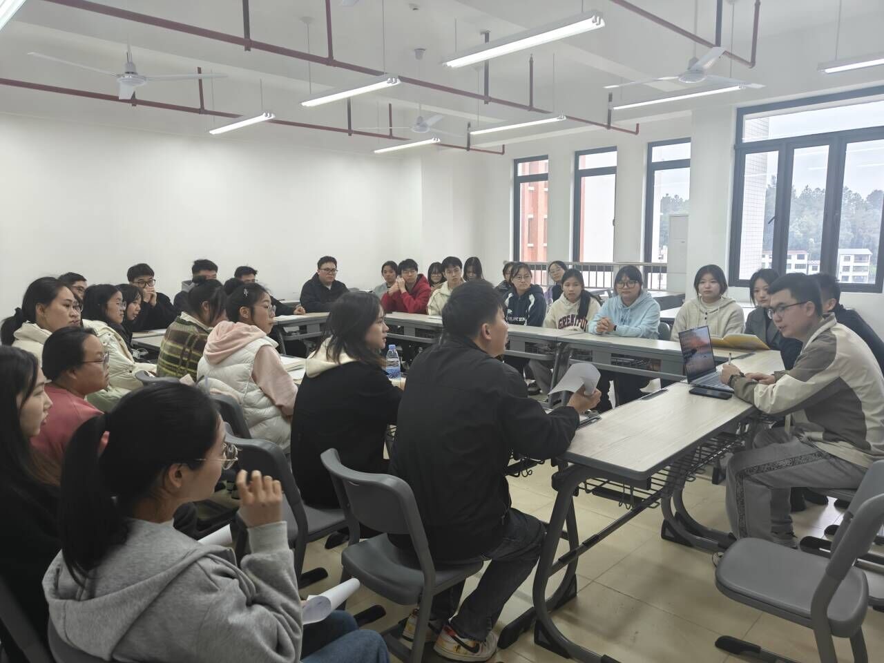 座谈会上,企业代表详细介绍了公司的招聘岗位需求和职业发展路径,让学生对企业有更直观的认识。开元官网辅导员林维杰则围绕当前就业形势进行分析,为学生提供实用的求职技巧和职业规划建议,如优化简历、提升面试能力等。学生就关心的行业前景、薪资待遇、技能提升等问题与企业和老师们展开热烈讨论,提出自身困惑与职业期待。