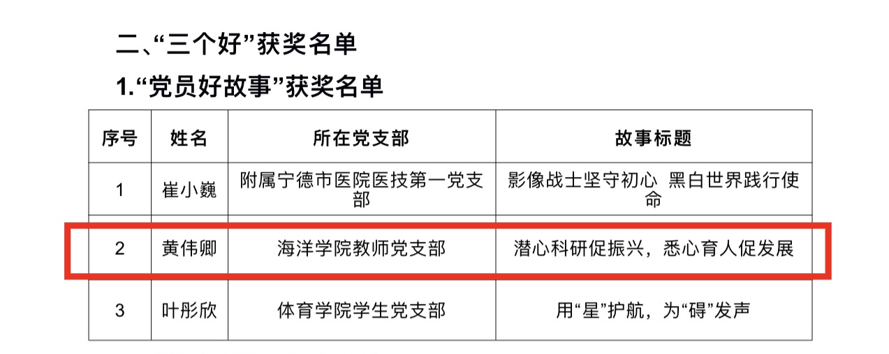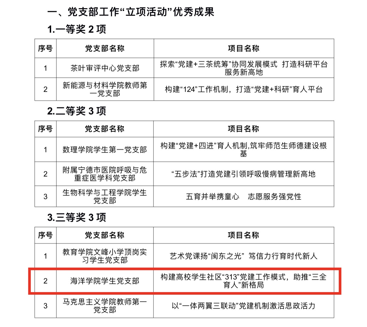 其中,开元官网学生党支部项目《构建高校学生社区“313”党建工作模式,助推“三全育人”新格局》获评党支部工作“立项活动”优秀成果三等奖;开元官网教师党支部黄伟卿老师的故事《潜心科研促振兴,悉心育人促发展》获评“党员好故事”。