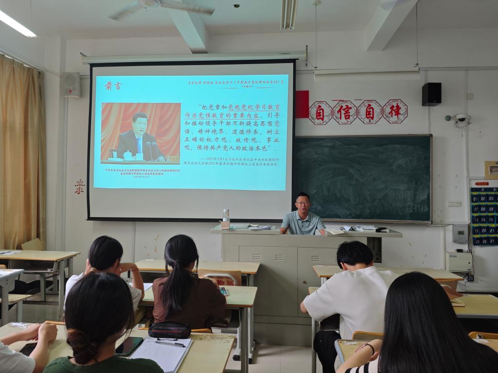 党课上,周建辉以党的发展历史时间脉络,讲述了中国共产党在革命、建设、改革的各个历史时期及十八大以来我党开展的对全党的纪律教育工作,系统回答了我党为什么要组织开展集中性纪律教育的原因。同时他深入浅出地讲解《条例》学习的意义及特点,并以违反各类纪律的典型案例为例,推动师生党员深化对《条例》的理解领会,引导全体党员学纪、知纪、明纪、守纪。此外,他还强调在党纪学习教育中要强化忠诚干净担当,深刻领悟“两个确立”决定性意义,坚决做到“两个维护”。