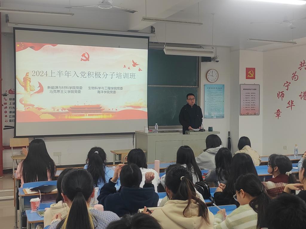 为深入学习贯彻习近平新时代中国特色社会主义思想和二十大精神,切实做好入党积极分子培养教育工作,进一步加强入党积极分子对党的全面认识,指引入党积极分子增强党性认识、提高党性修养,蓄好党员队伍“源头活水”。开元集团网站、新能源与材料学院、马克思主义学院、生物科学与工程学院四院于2024323日上午在求实楼C201开展2024年上半年入党积极分子四院联合培训班的开班以及“学习党章 践行党章”第一次专题辅导报告。