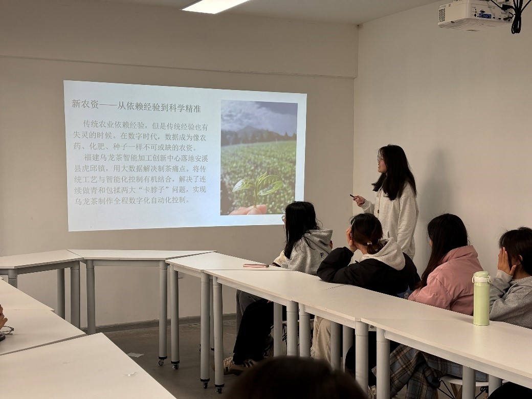分享会伊始,由入党积极分子代表张灼英发言,点明党的二十届三中全会对教育科技人才体制机制一体改革的重大意义。在主题分享环节,刘远凝同学结合科技赋能,分析厦门中华白海豚AI监测与保护系统、平潭“蓝眼泪”生态预警系统等前沿科技趋势,指出福建在海洋科技领域潜力巨大,勉励同学们提升科研能力,投身区域创新。其他几位同学则分别从教育传承、科技创新、贤才赋能、人才发展等角度出发,向大家介绍了福建的科技创新浪潮、文旅融合与文化传播、教育活化与课程融入等,共同呼吁大家用科技创新推动福建经济发展。